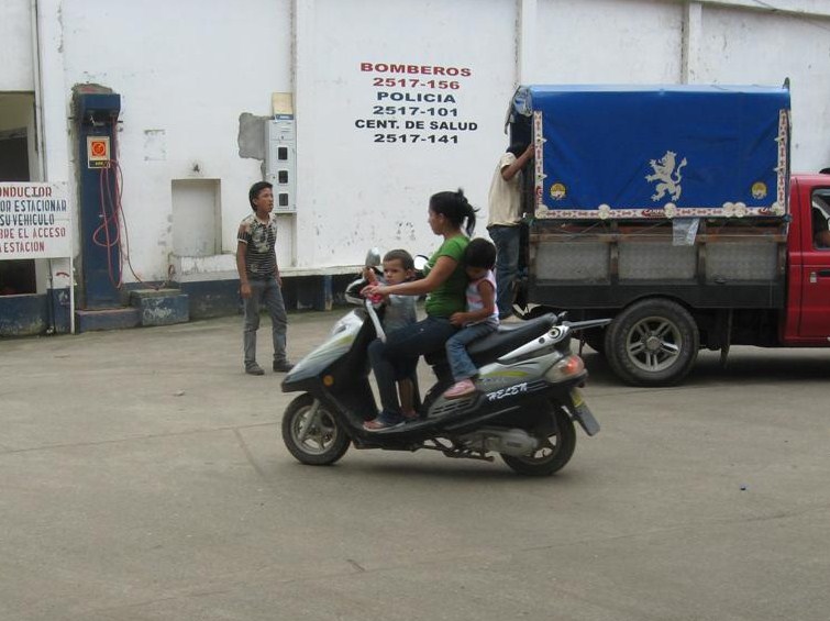 Road safety in Ecuador? Note the guy riding in the back of the pickup truck, but more especially - the three-up motor scooter! - and not a helmet in sight. Of course, some Canadian birders in Ecuador seem to follow the lead of the natives!