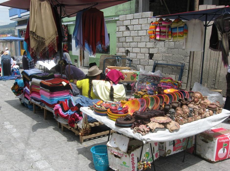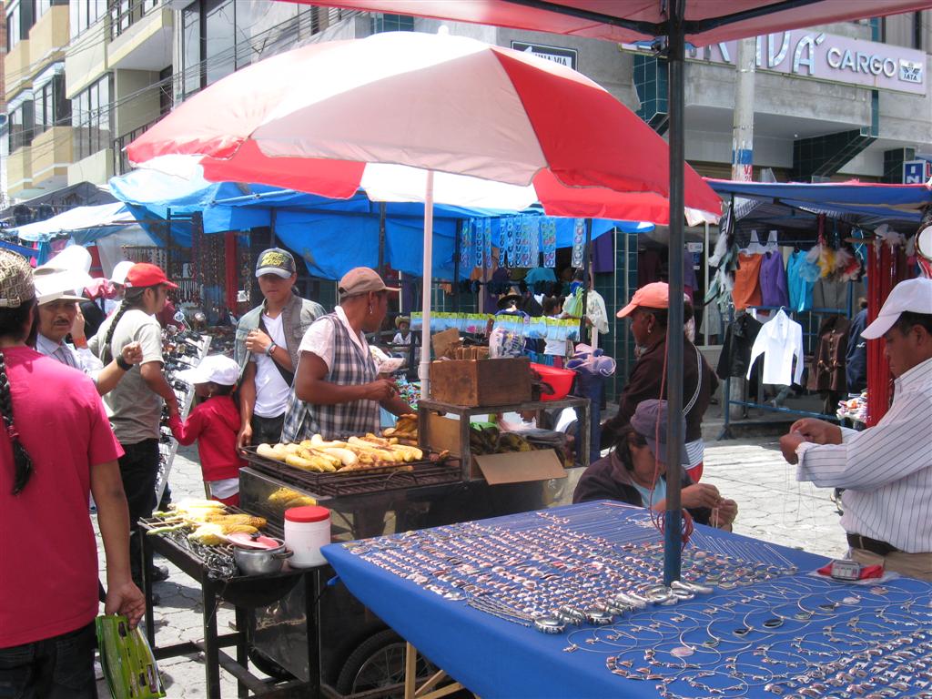 A further day in Quito was a Saturday which enabled us to take a trip to the Otavalo market. Famous for its woven and knitted goods, the market also has livestock (but, early in the morning, before we arrived), jewellery, all kinds of vegetables and local foods. The stalls are tightly packed, full of colour, and you are expected to bargain! The subsequent series of photographs attempts to capture some of the market's flavour.